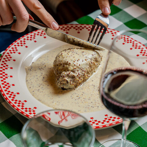 Andouillette « Maison Bobosse » à la fraise de veau tirée à la ficelle, sauce moutarde